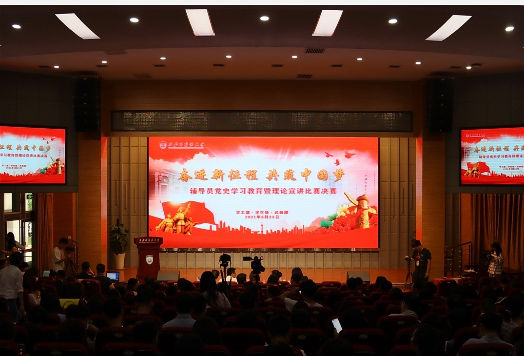 2021年5月25日上午,由学工部·学生处·武装部主办的“奋进新征程,共筑中国梦”西安外国语大学辅导员党史学习教育暨理论宣讲比赛决赛在JA111举行。来自陕西师范大学、西安理工大学、西安外国语大学等3所高校的5位校内外专家担任本次决赛专家评委,来自各学院的31名学生代表组成学生评审团。校党委副书记马洁,宣传部、组织部、统战部等部门负责人出席了本次大赛,各学院党委书记、副书记、学工办主任以及全体辅导员和部分学生到场观摩。本次大赛共有来自各学院的15名辅导员参赛,九州娱乐城