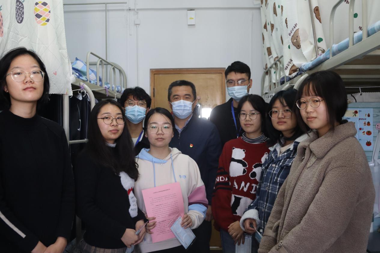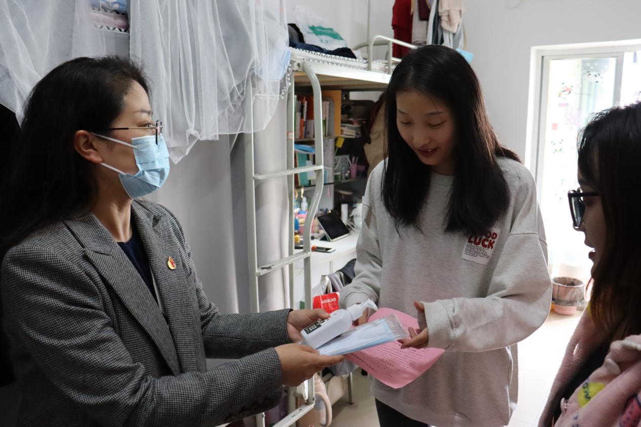 深入慰问面对面。为进一步贯彻落实学校疫情防控专题会议精神,筑牢校园安全防线,全力保障师生健康和学校稳定,10月24日上午,院党委书记王刚、副书记王丹带队走访慰问学生宿舍,宣讲传达学校疫情防控相关政策,叮嘱同学们始终绷紧思想之弦,时刻关注疫情形势变化。走访同时,院领导也向受访学生发放爱心防疫礼包,进一步做实做细防疫物资保障。