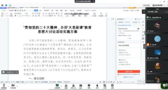 随后开展“贯彻党的二十大精神,办好‘大思政课’”教育思想大讨论活动研讨会,中心组成员紧密结合学科专业特色,结合加快中国特色哲学社会科学学科体系、学术体系、话语体系建设开展研讨交流,大家重点围绕教育教学理念、教材选用修订、课堂实践教学、教研双促融合等方面关键问题建言献策,提出办好“大思政课”的意见建议。