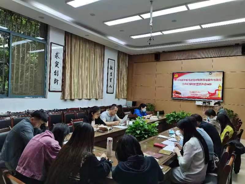 会议伊始,全体参会人员观看视频《习近平听取陕西省委和省政府工作汇报并发表重要讲话 途中在山西运城考察》,学习习近平总书记在听取陕西省委和省政府工作汇报时的重要讲话精神,党委书记王刚带领大家学习习近平总书记历次来陕考察重要讲话精神。随后开展《习近平著作选读》第一卷、第二卷宣讲学习活动。党委副书记夏玉瑜领学《习近平著作选读》第一卷《坚持党对一切工作的领导》篇目,副院长董佳同志领学《习近平著作选读》第一卷《建设网络良好生态,发挥网络引导舆论反映民意的作用》,党委委员王瑞领学《习近平著作选读》第一卷《要有高度的文化自信》篇目。接着,为推进主题教育和业务工作有机融合,进行毕业生就业专题研讨交流,参会人员以详细的图表、直观的数据和生动的案例探讨如何多方联动推进毕业生高质量就业,大家积极集思广益破难题、建言献策促就业,切实将主题教育成效转化为推动学院工作的生动实践。