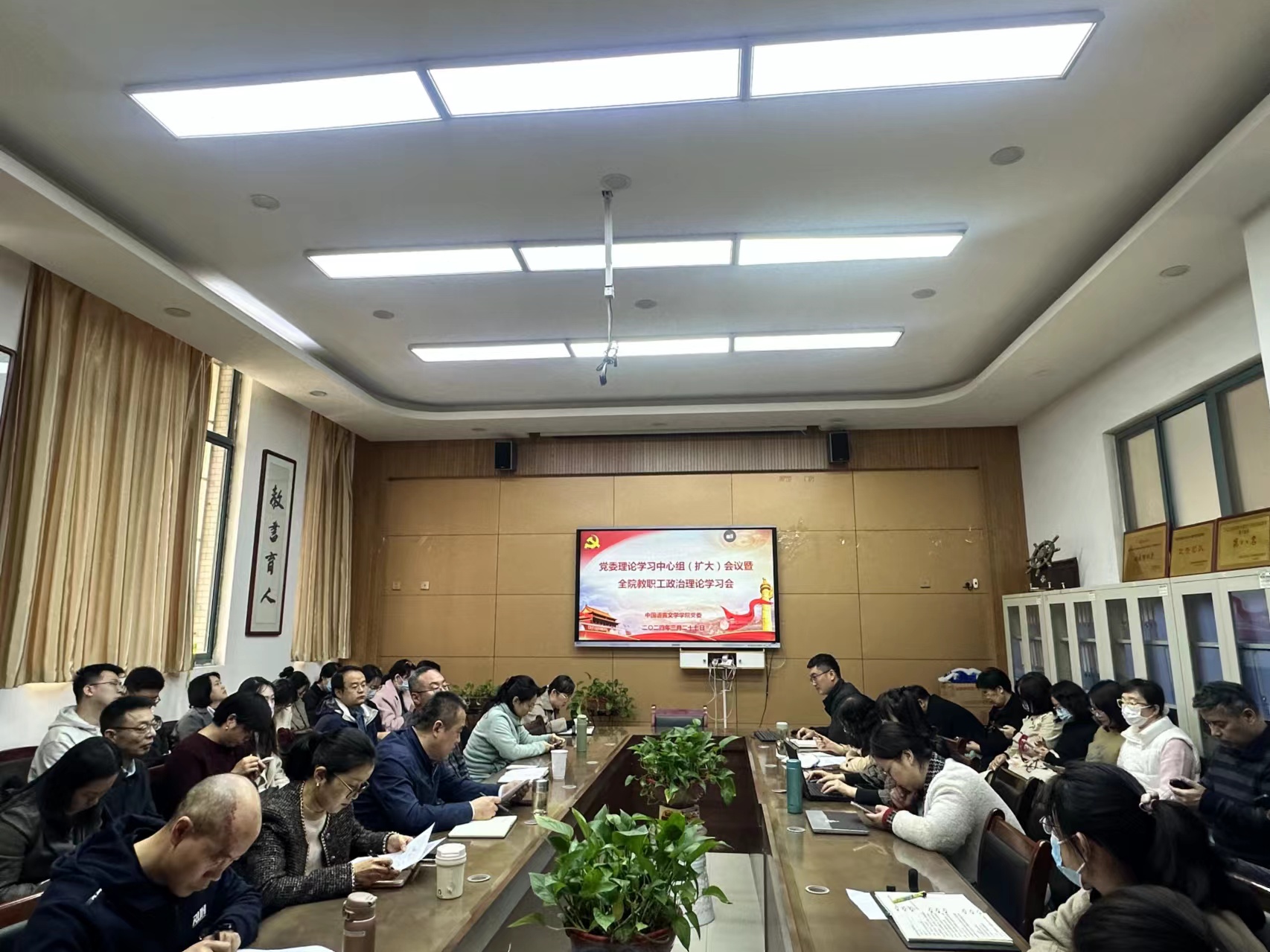 2024年3月27日下午,九州娱乐城 党委在JE126会议室召开党委理论学习中心组(扩大)会暨全体教职工政治理论学习会议,学院党委理论学习中心组成员、全体教职工参加会议。会议由学院党委书记王刚主持。