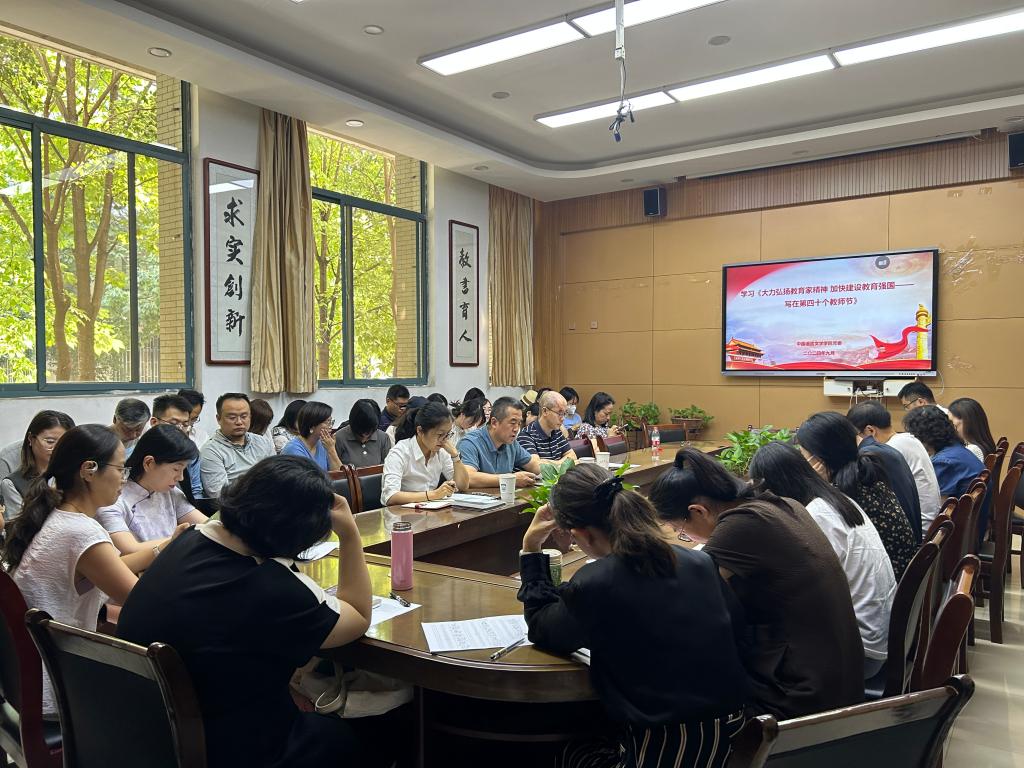 会议伊始,全体教职工集体观看视频《习近平在全国教育大会上发表重要讲话》,党委副书记夏玉瑜领学《中共中央国务院关于弘扬教育家精神加强新时代高素质专业化教师队伍建设的意见》《大力弘扬教育家精神加快建设教育强国——写在第四十个教师节》,党委书记王刚领学学校《拓展办学资源工作实施方案》。随后,开展研讨交流活动,苏永前教授表示学校已故法籍教授让·德·米里拜尔将全部精力倾注到学校教育事业,并资助40余名学子赴法留学,他用爱和智慧生动诠释了教育家精神,我们要学习他乐于爱生、甘于奉献的崇高道德品格。孙霄教授谈到作为教师,要大力弘扬教育家精神,坚持上好每一节课,教好每一个学生。要坚定信念,做好指引学生前行的“引路人”;要潜心治学,做好提升学生本领的“领航人”;要敬业爱生,做好点亮学生梦想的“筑梦人”。