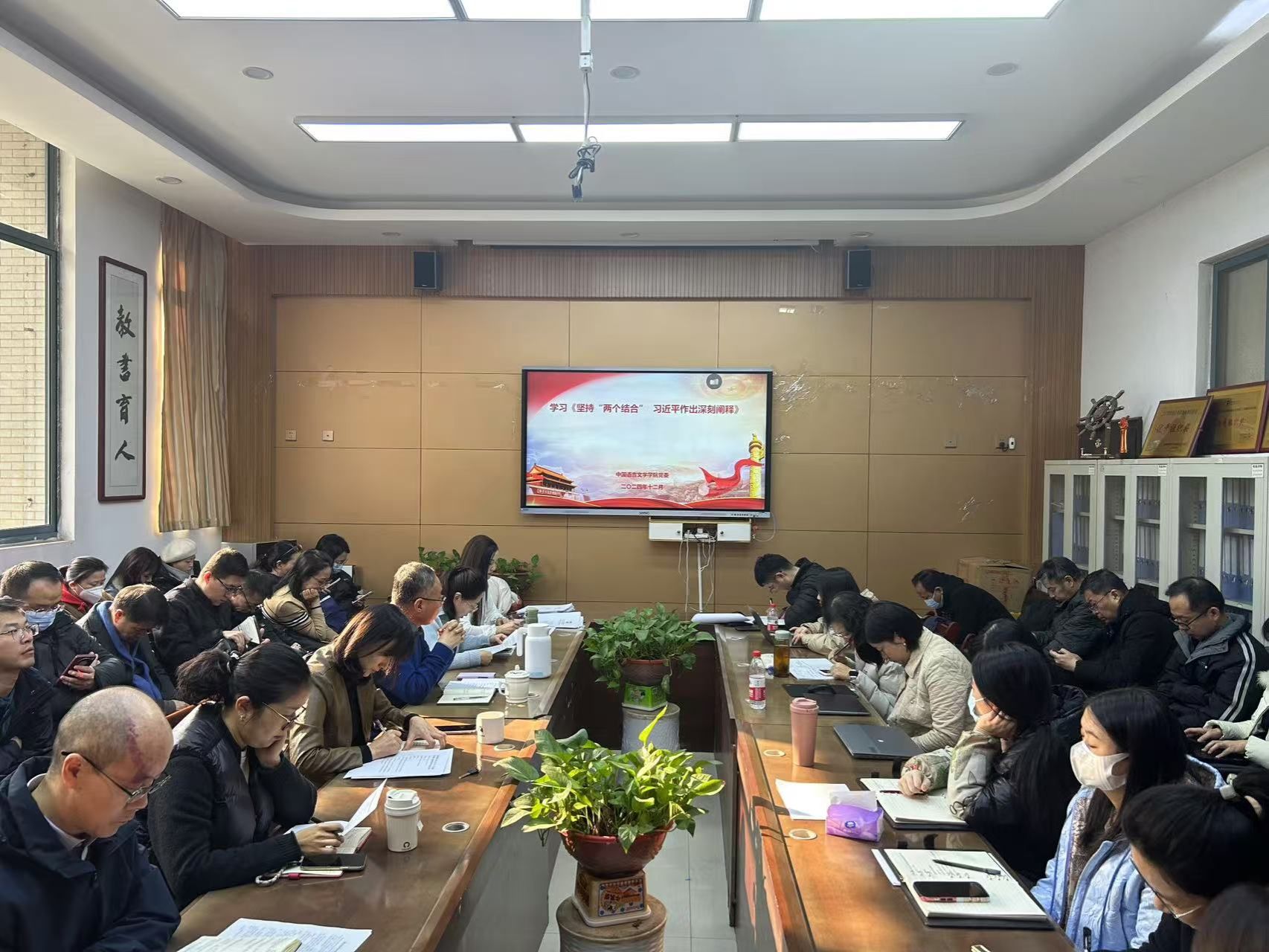 会上,全体教职工集体观看视频《中共中央政治局召开会议 分析研究2025年经济工作 研究部署党风廉政建设和反腐败工作 中共中央总书记习近平主持会议》,副院长董佳领学《坚持“两个结合”习近平作出深刻阐释》,副院长杨志飞领学《习近平总书记强调的“总体国家安全观”》,学院党委副书记夏玉瑜领学《习近平论建设具有强大凝聚力和引领力的社会主义意识形态》。