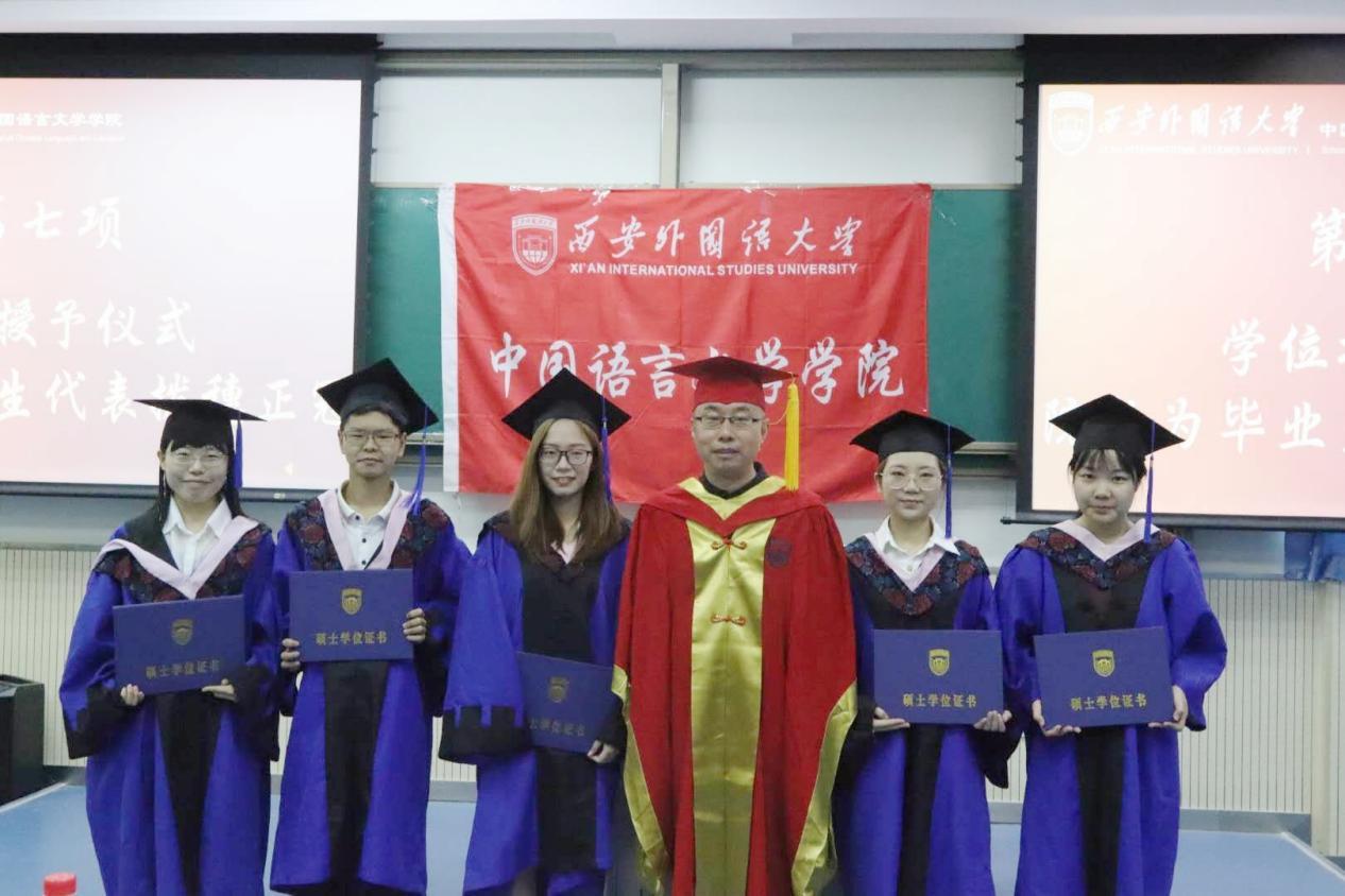 伴随着庄严的国歌声,毕业典礼正式开始。首先,院长韩伟代表学院向2021届毕业生送上真挚的祝福,祝贺同学们顺利完成学业、开启奋斗新征程。他希望毕业生们在与新时代同向同行、共同前进的征程中,要勇于担责,以责任立于心头,人生之路方能日益阔大;要贵在坚持,以坚持付诸行动,人生目标方能最终实现;要终身学习,以学习作为终身之事,未来人生才能适应时代。随后,副院长董佳宣读了《西安外国语大学关于授予陈锋等 712 名研究生博士学位、硕士学位的决定》《西安外国语大学关于授予陈玲玲等3800名学生学士学位的决定》,对毕业生们顺利完成学业表示祝贺。党委书记王刚宣读了《西安外国语大学关于表彰2021届优秀毕业生、优秀毕业生干部的决定》,充分肯定了毕业生们的刻苦学习和积极进取,鼓励大家不忘初心,脚踏实地,砥砺前行。