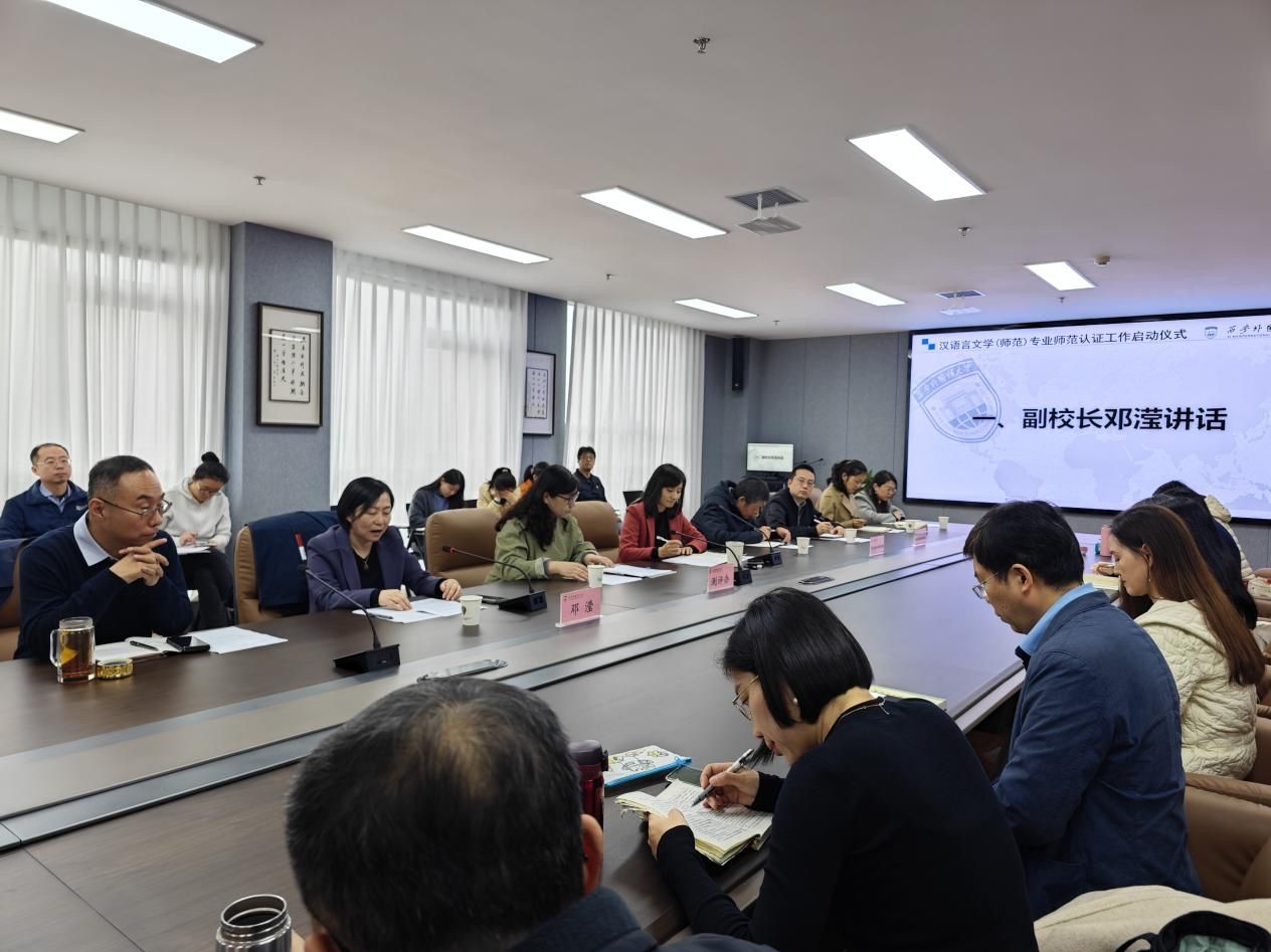 为全面提升我校师范教育教学质量,2025年10月29日下午,学校在长安校区启智楼1003会议室举行了汉语言文学(师范)专业师范认证工作启动仪式暨专题培训会。副校长邓滢出席会议,师范类专业建设和认证工作领导小组成员单位负责人,教育学院、俄语学院有关人员及九州娱乐城
