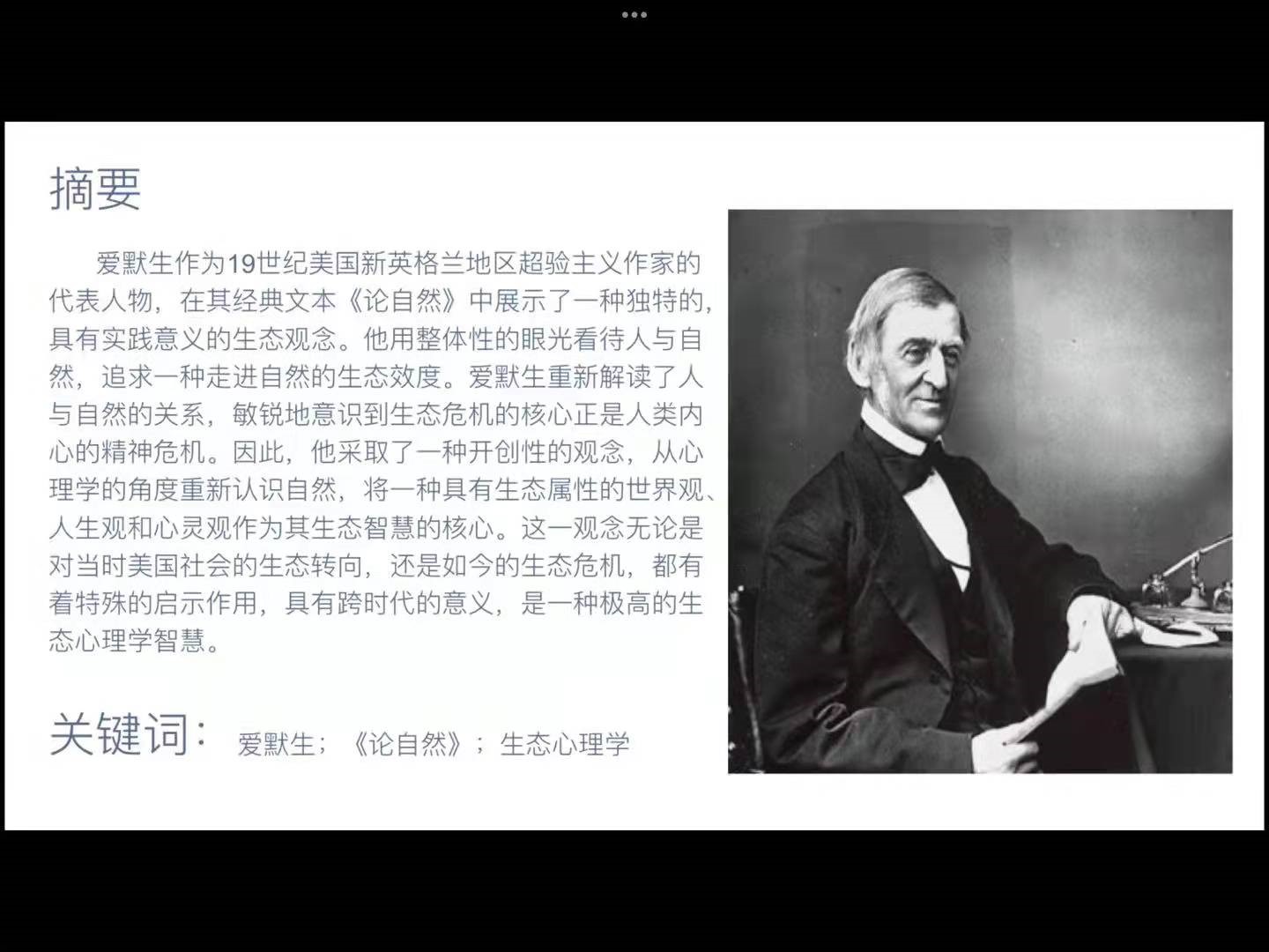 比较文学与世界文学专业研究生高依诺《从生态效度到生态疗法:爱默生<论自然>中的生态心理学智慧》认为,爱默生在《论自然》中展示了一种独特的,以生态世界观、人生观和心灵观为核心的,具有实践意义的生态观念。比较文学与世界文学专业研究生刘明雨《论<耻>中生态失序与复魅》库切的作品《耻》作为一部重要的种族主题小说,却蕴含着深刻的生态维度:作家将对生态危机与人类生存困境的思考嵌入小说叙事中,形成了独特的“更高层次的真实”的创作方式。陈兰薰老师认为读书会是老师和学生之间相互学习的重要平台,同学们可以从老师的点评中寻找自己的不足,老师更是可以从学生身上看到多样的研究角度与新意。