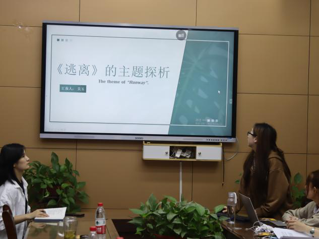 院长韩伟、教师孙霄、孙旭、邹莹、陈兰熏以及2022级比较文学与世界文学研究生参加此次读书会。本次会议由赵一帆主持,阚立珍、王乙、王欣子、石心仪、吴玉、周章、李春燕、赵佳欣、赵然九名同学分别从艾玛命运悲剧的凝视、《逃离》的三重主题、迷途的尤利西斯、跨文化视野下的中国古代悲剧探究、纳博科夫与乔治·奥威尔文学批评比较、日本文学中的女性书写研究,马克思文艺理论的影响研究、纳博科夫文字下的喻示以及阿克瑟尔城堡中的想象文学研究等为主题进行了详细的学术汇报。2020级研究生王铮向同学们分享了关于研究生课程学习、论文写作等方面的心得体会。