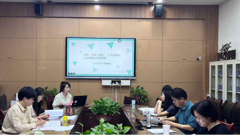 第二位发言的是2022级文艺学专业硕士研究生秦婧尧,论文题目为《本体•空间•图文:文学地图的认知策略与价值探索》。汇报人首先对论文的各部分进行了简要陈述:第一部分是异质与共生:文学地图的本体构架,主要通过文学与地图的异质与共生因素,为论述文学地图这一新型模型的融通与结合提供辩证的背景框架。第二部分是“路线认知”与“概观图示”:文学地图的空间认知策略,主要通过移植与借鉴心理学模型中的认知地图,为文学地图的空间认知提供导向与指南。第三部分是“图本”与“文本”:文学地图批评的互文与增值,通过文学与地图两大类型的特性进行相互阐发、重构与增值,进而为文学地图提供批评策略。结语部分对文学地图的发展与研究进行了展望与提升,指出其批评方法的可塑性、开放性与包容性定然在未来的研究中继续大有作为。