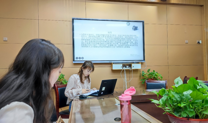 赵周宽老师认为本论文理论难度比较大,汇报的同学们所存在的共同的问题:理论问题当中欠缺对于标题关系的思考,标题之间的关系可以是逻辑顺序关系,也可以纠缠在一起,形成不可拆解的整体;而汇报人的“三体”概念是一种延展的,但对于题目中三个分论点之间的逻辑关系还可以更清晰地说明。刘欣老师指出论文的表达方面比较通顺,但用词表述要谨慎准确;应该用理论来解决问题,而不是单独的探讨理论,要找到问题性,搭建好论文的整体框架之后进行写作会更加顺利。毕晓老师指出论文的内在逻辑要进一步斟酌,德勒兹反对认知关系的身心二分的逻辑,因此将“认知”和德勒兹勾连起来存在着一定的矛盾。廖宇婷老师指出论证的时候可以援引一些例子或是结合论点,要更加注意细节问题,她同时指出汇报人在第三部分的“物感”只涉及到了西方文论,而并未涉及中国古典文论,中国古代“物感说”很多,可以查阅资料进行补充。王敏老师认为本文理论概念是学术热点,在后续的修改方面可以加入新的维度进行辩证性思考。