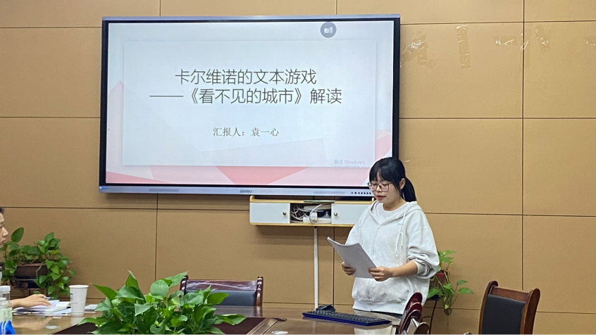 第4位发言人袁一心的论文为《卡尔维诺的文本游戏——〈看不见的城市〉解读》。结合卡尔维诺的创作观与时代背景,阐述小说戏仿经典文本、构建晶体模式的方式方法,交织真实与幻象、设立意象符号的艺术手段。
