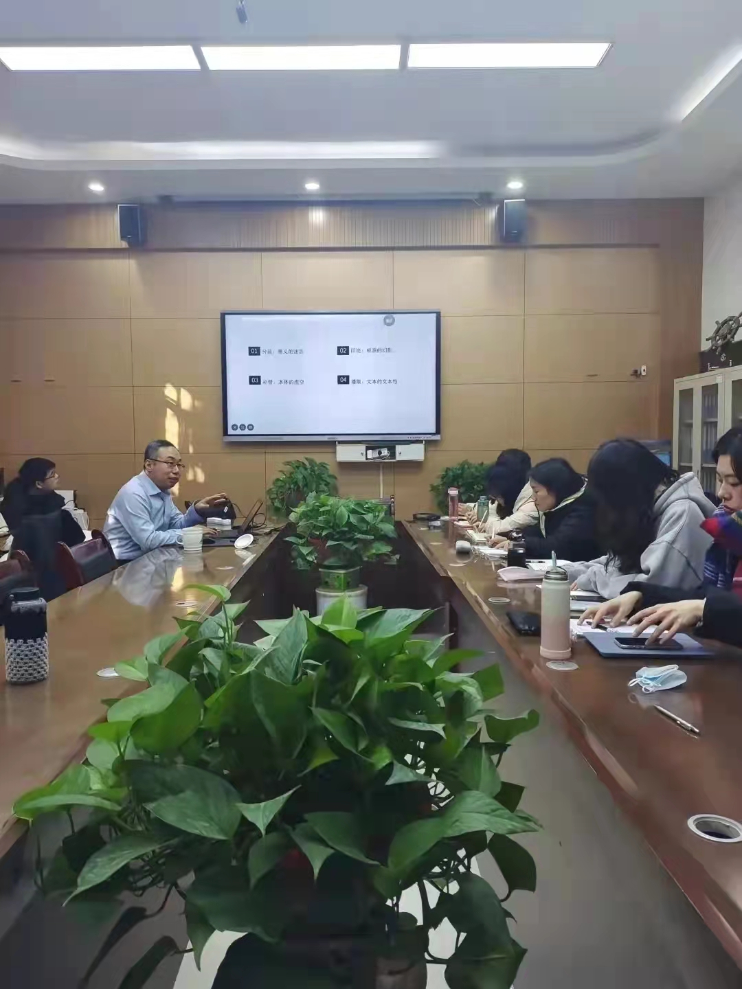 随后,韩伟院长向同学们介绍了后结构主义美学,围绕德里达与文本解构、福柯与历史重写、拉康与主体重组、德勒兹与思想重构四个方面进行详细阐释。其中,他特别强调德里达与文本解构,并解释了分延、印迹、补替、播散四个名词的内涵与应用,鼓励同学们将国内外最新的理论与文本相结合,从而进行学术研究。