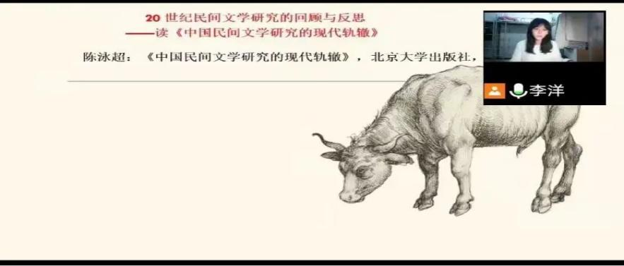 李洋同学汇报的《中国民间文学研究的现代轨辙》《小说修辞学》《二十世纪中国文学史论》大致涉及了文学史、文学理论和文学批评三个领域。《轨辙》对20世纪民间文学学术史中的重要学者及研究成果进行梳理、评述;《小说修辞学》在“破旧”的基础上“立新”,提出自出机杼的小说美学理论;《史论》以“现代性”为线索,汇编论文,显示20世纪中国文学的主要任务。最后总结认为,这三本书对于文学乃至整个社会都起着导夫先路的作用。