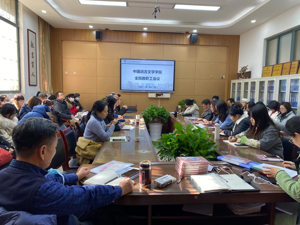于会议室JE126召开了全院教职工会议,学院党政领导及全体教职工参会。会议由院长韩伟主持。