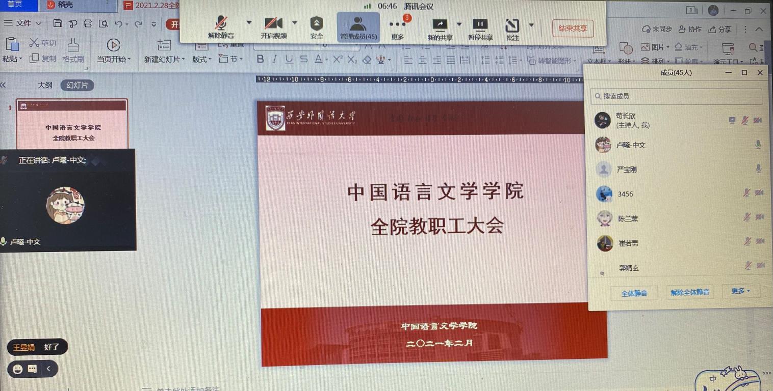 召开了全院教职工大会,会议采取线上线下相结合的方式进行,学院党政领导及全体教职工参会。本次会议由院长韩伟主持。