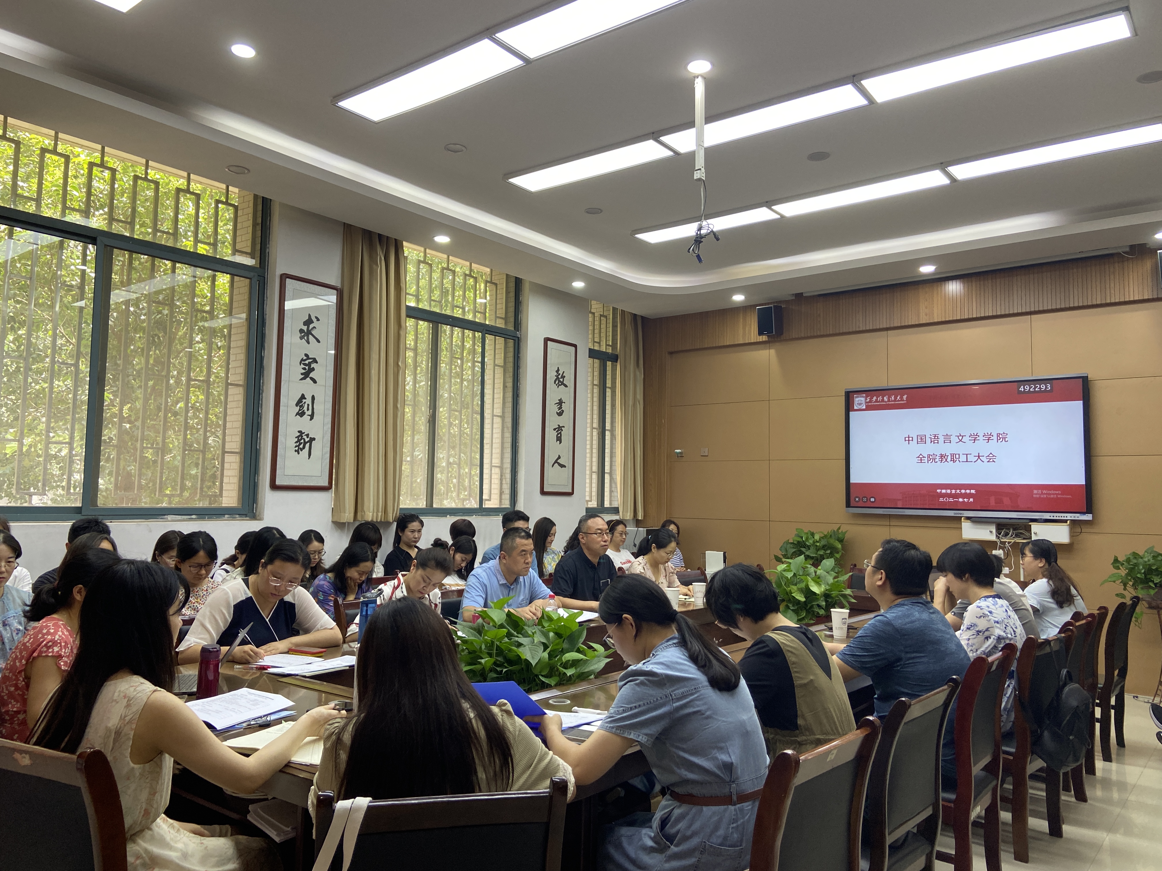 王刚书记从党的建设、教学科研、师资建设、学术交流、学生工作等五个方面入手,全面介绍了学院上半年各项工作情况,并传达了学校意识形态工作相关文件精神,他要求全体教职工强化思想认识,坚守立德树人使命,在教材选用、教学育人等各个环节积极防范化解风险,以高度的政治自觉做好安全稳定工作。他同时指出,当前疫情防控形势依然严峻,教职工要克服麻痹思想,落实晨午检制度、假期前安全检查、外出报备制度等疫情防控措施,要做好个人及家人防护,尽量减少外出及聚会,确保个人及家人健康安全。