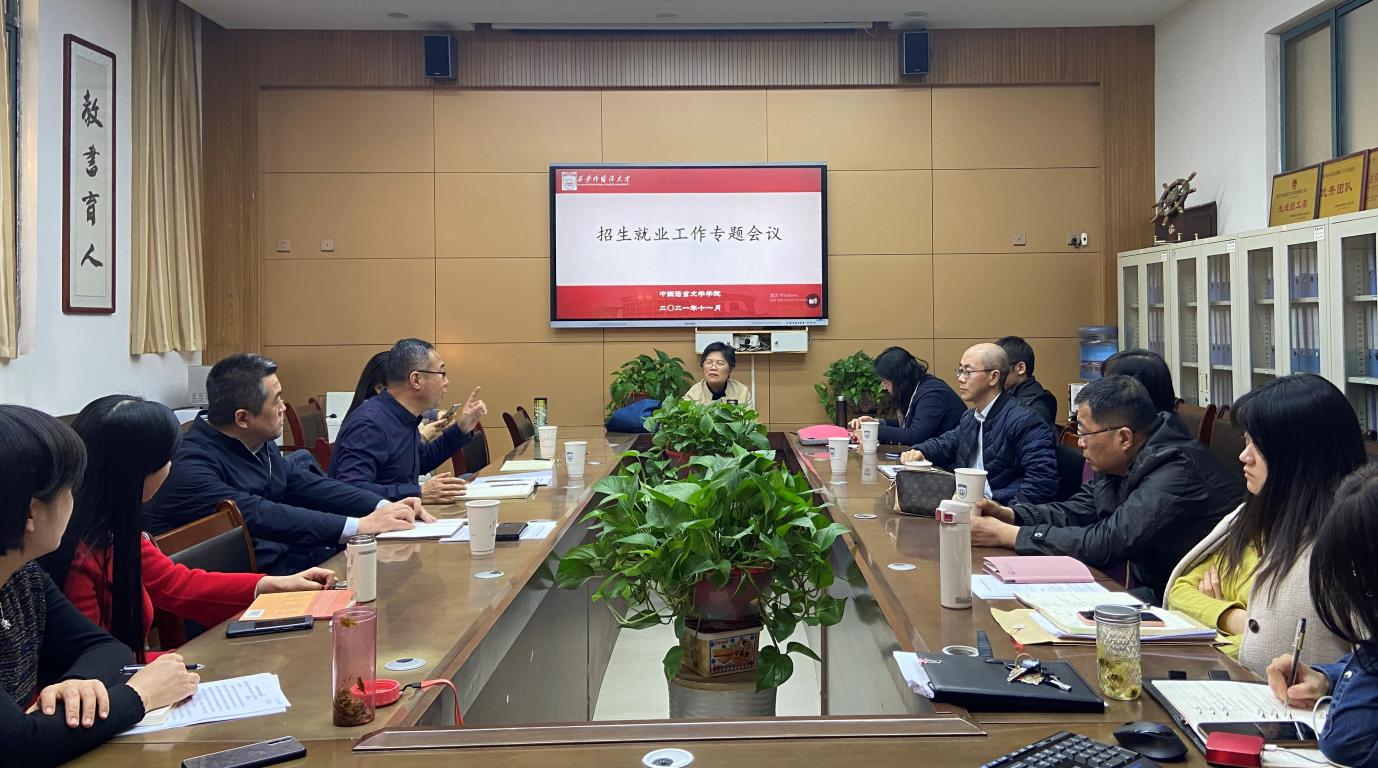 韩伟院长和王刚书记对招生就业工作做出部署。目前招生就业工作处于重要变化的新时期,学院将继续加强组织领导和责任落实,始终把招生就业工作摆在首要位置,全院上下统一思想认识,加强教育教学协作,完善机制,多措并举,确保2022年招生就业工作目标顺利实现。