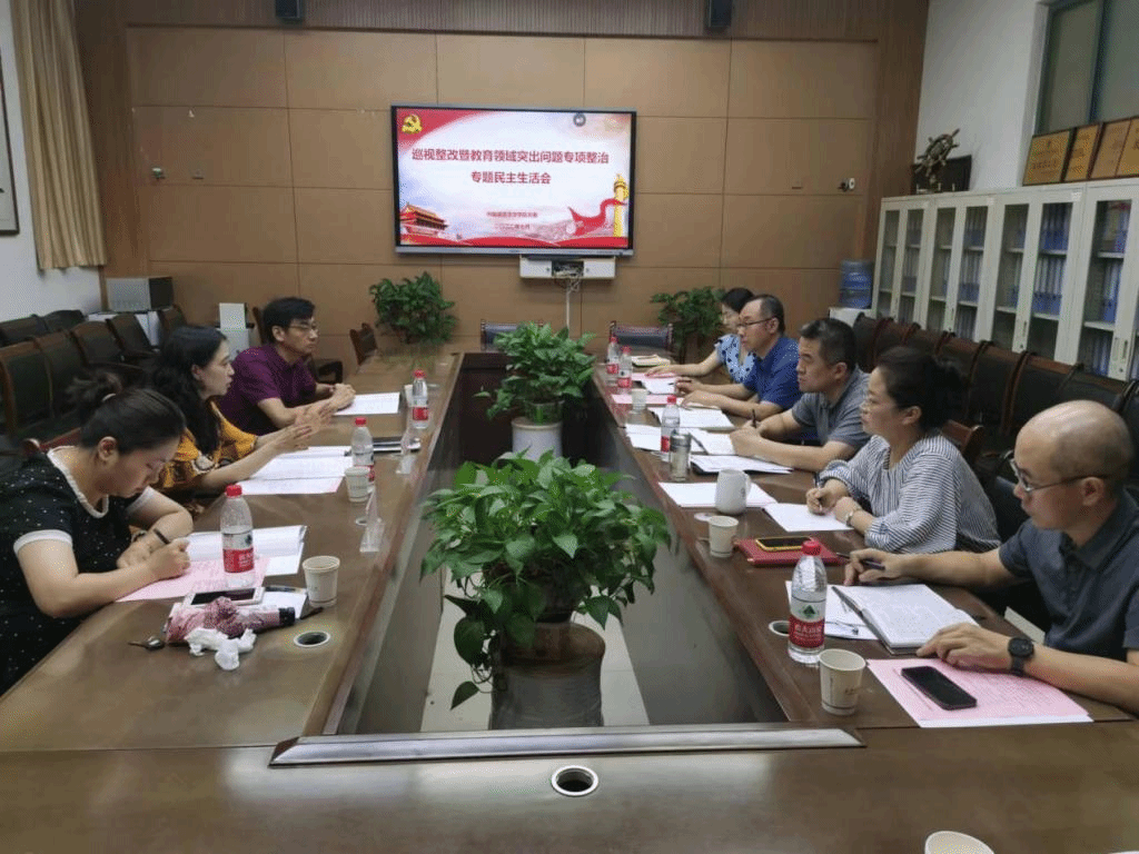 在JE126会议室召开巡视整改暨教育领域突出问题专项整治专题民主生活会。校党委副书记马洁、督导组成员郑锐华、陈洁到会督导,学院领导班子全体成员参会,会议由学院党委书记王刚主持。