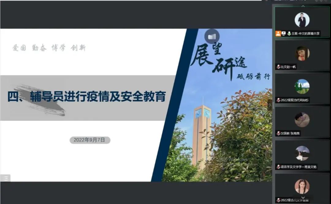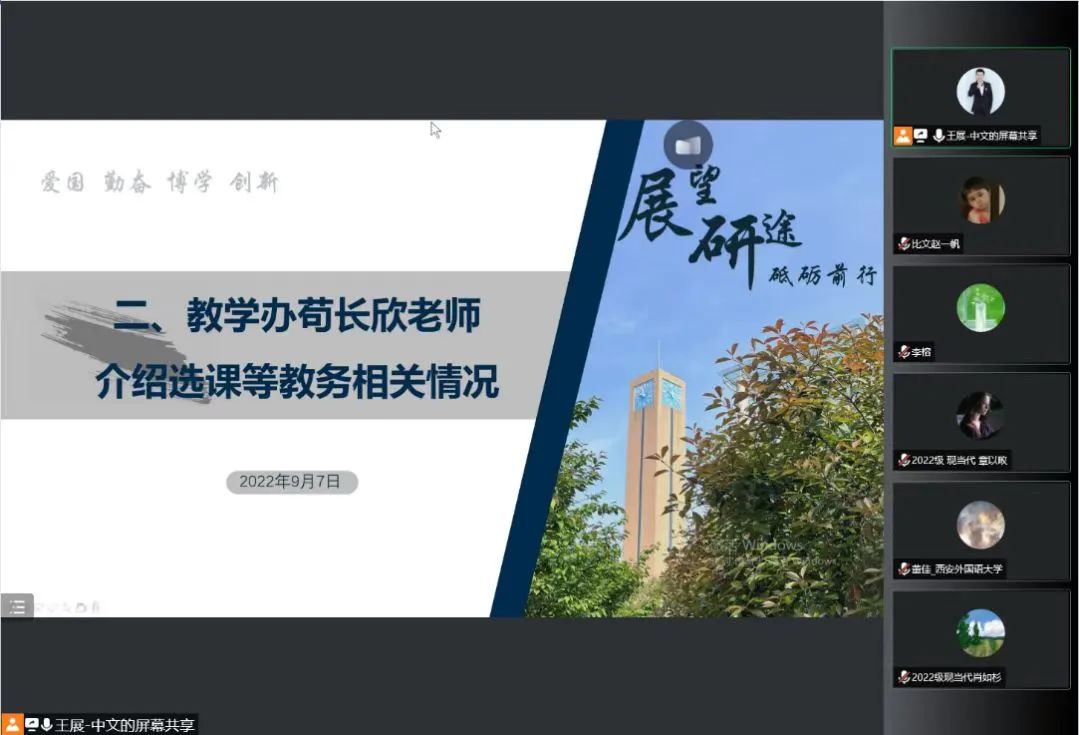 召开2022级研究生线上见面会。副院长董佳、各学科导师代表、2022级研究生辅导员王展、王瑞参加会议。见面会由王展主持。