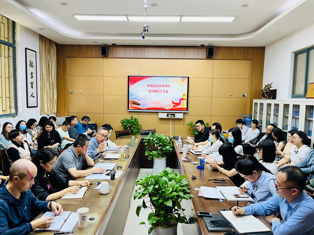 在JE126会议室召开全院教职工大会,学院党政领导及全体教职工参会。会议由院党委书记王刚主持。