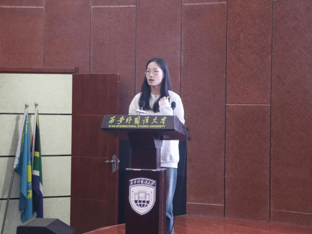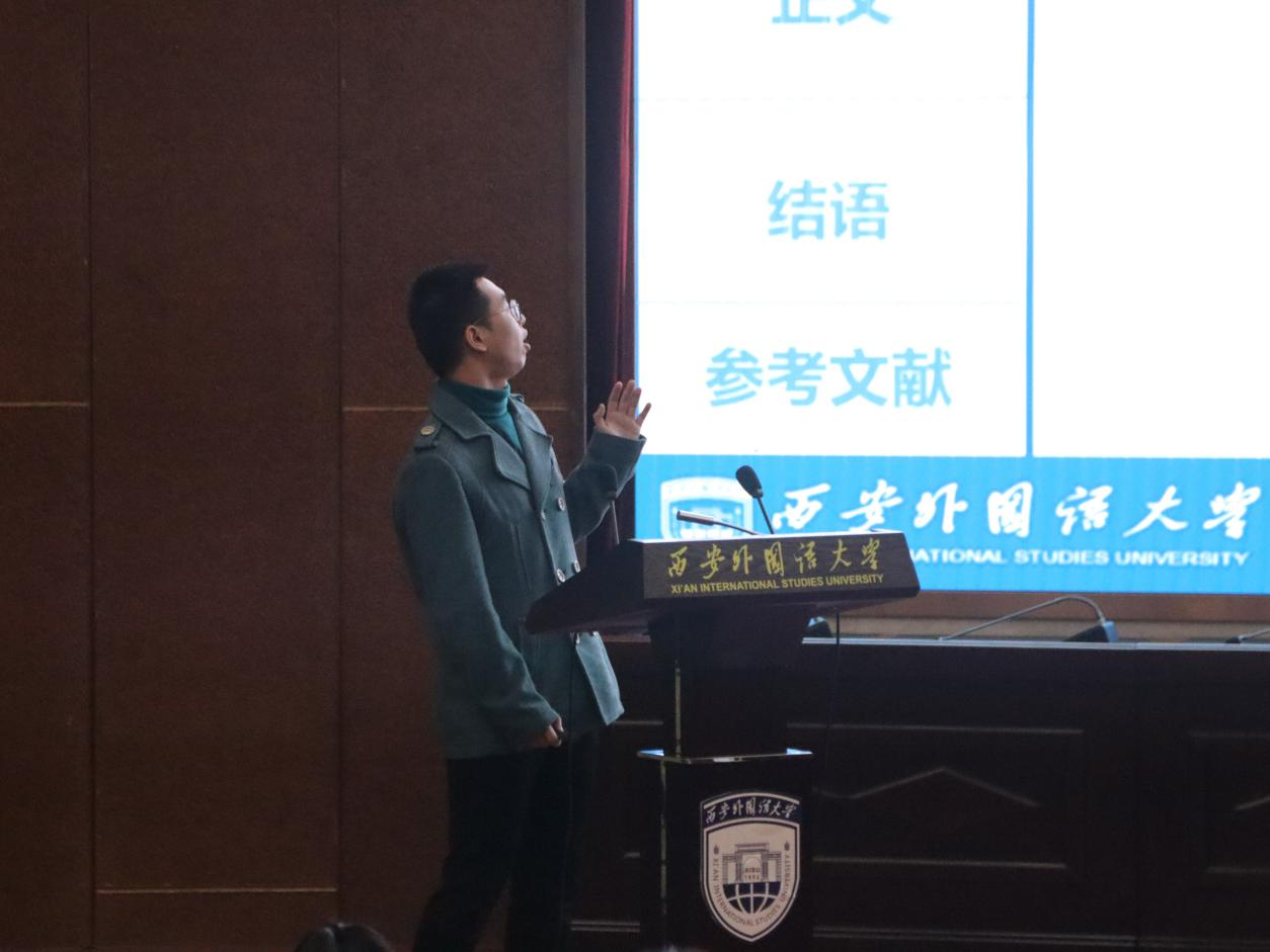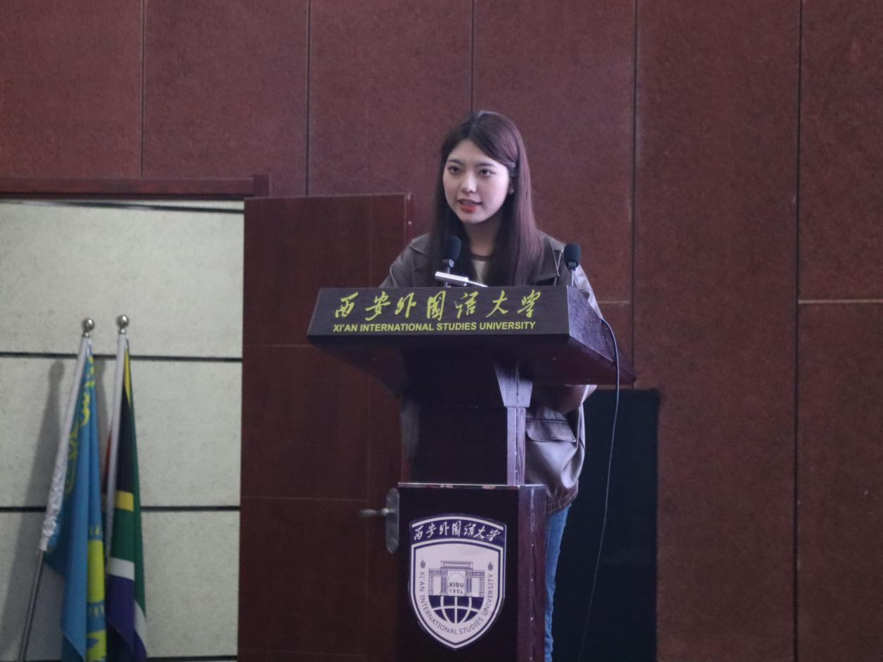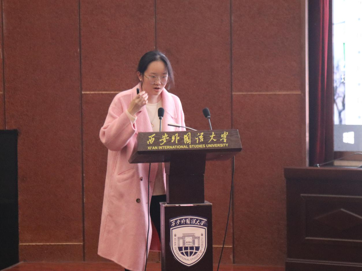 第六位发言的是汉语国际教育2102班王佳佳,论文题目为《浅谈零声母》。论文以零声母这一概念为出发点,在充分整合相关资料并进行深入分折的基础上,从其定义、发现和发展历程、分类、以及在遇到零声母字时需要注意的事项等多个维度,对学界目前关于零声母的相关研究进行全面而细致的整理,挖掘出零声母这一概念的特殊性和其存在的意义和价值。