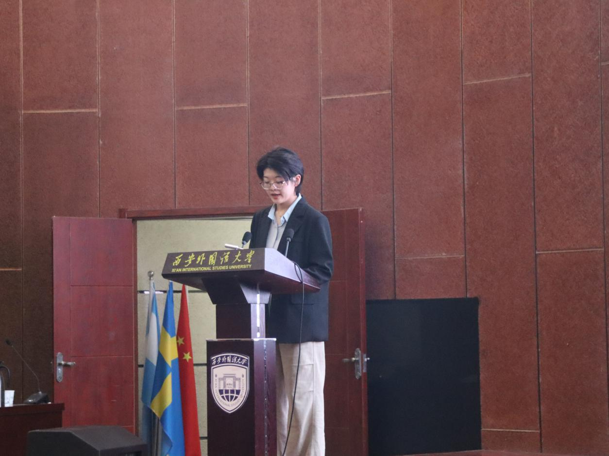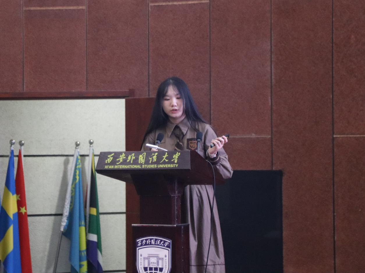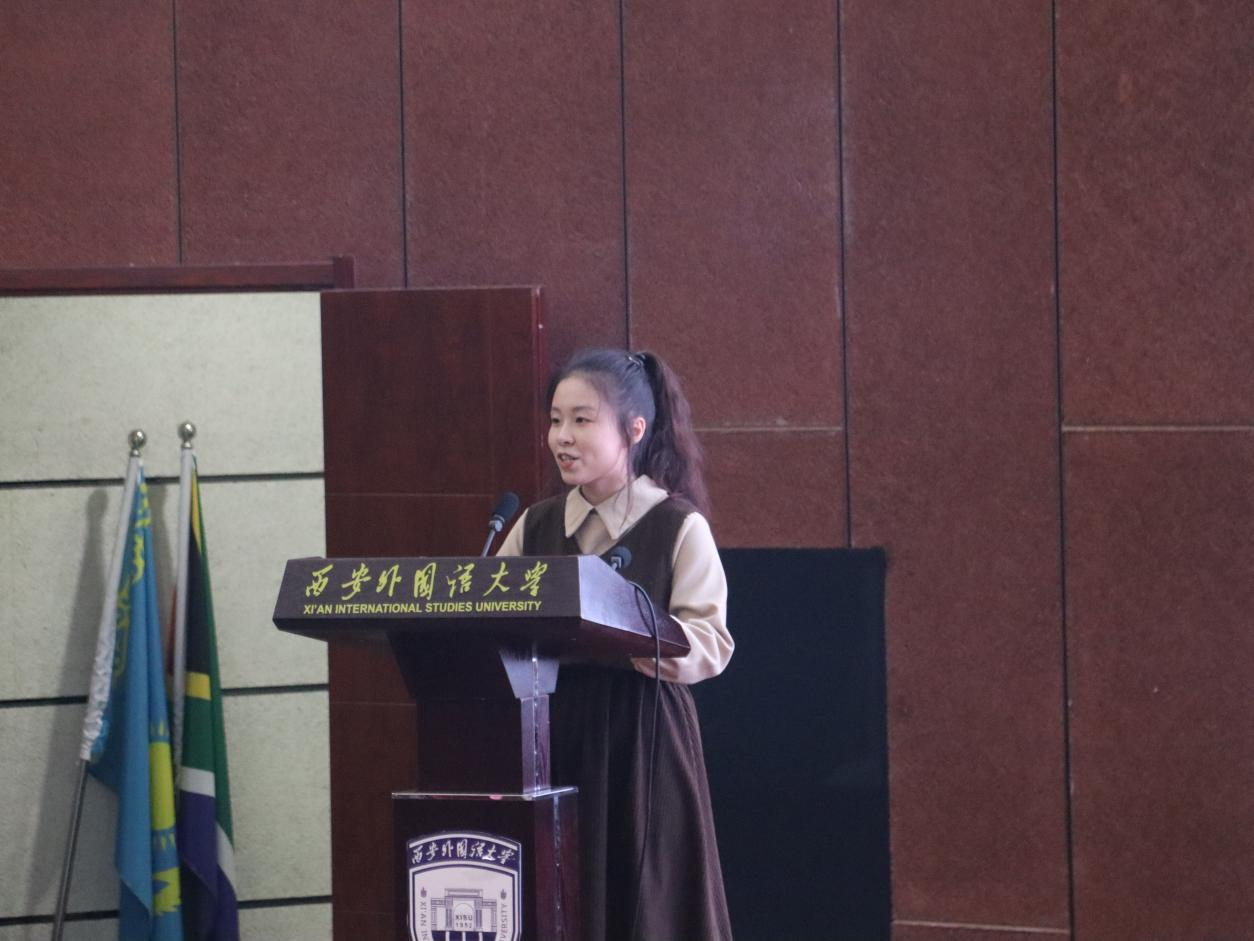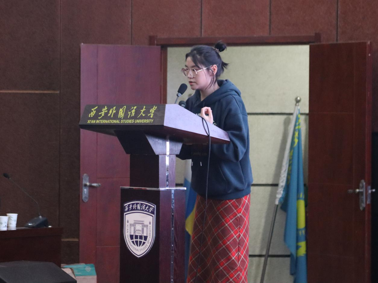 第六位发言的是汉语国际教育2102班王佳佳,论文题目为《浅谈零声母》。论文以零声母这一概念为出发点,在充分整合相关资料并进行深入分折的基础上,从其定义、发现和发展历程、分类、以及在遇到零声母字时需要注意的事项等多个维度,对学界目前关于零声母的相关研究进行全面而细致的整理,挖掘出零声母这一概念的特殊性和其存在的意义和价值。