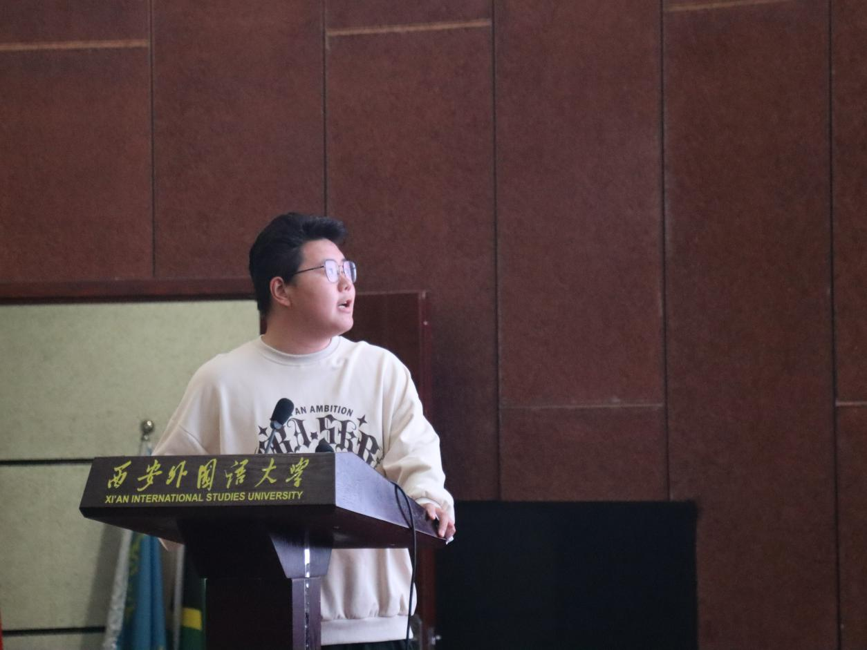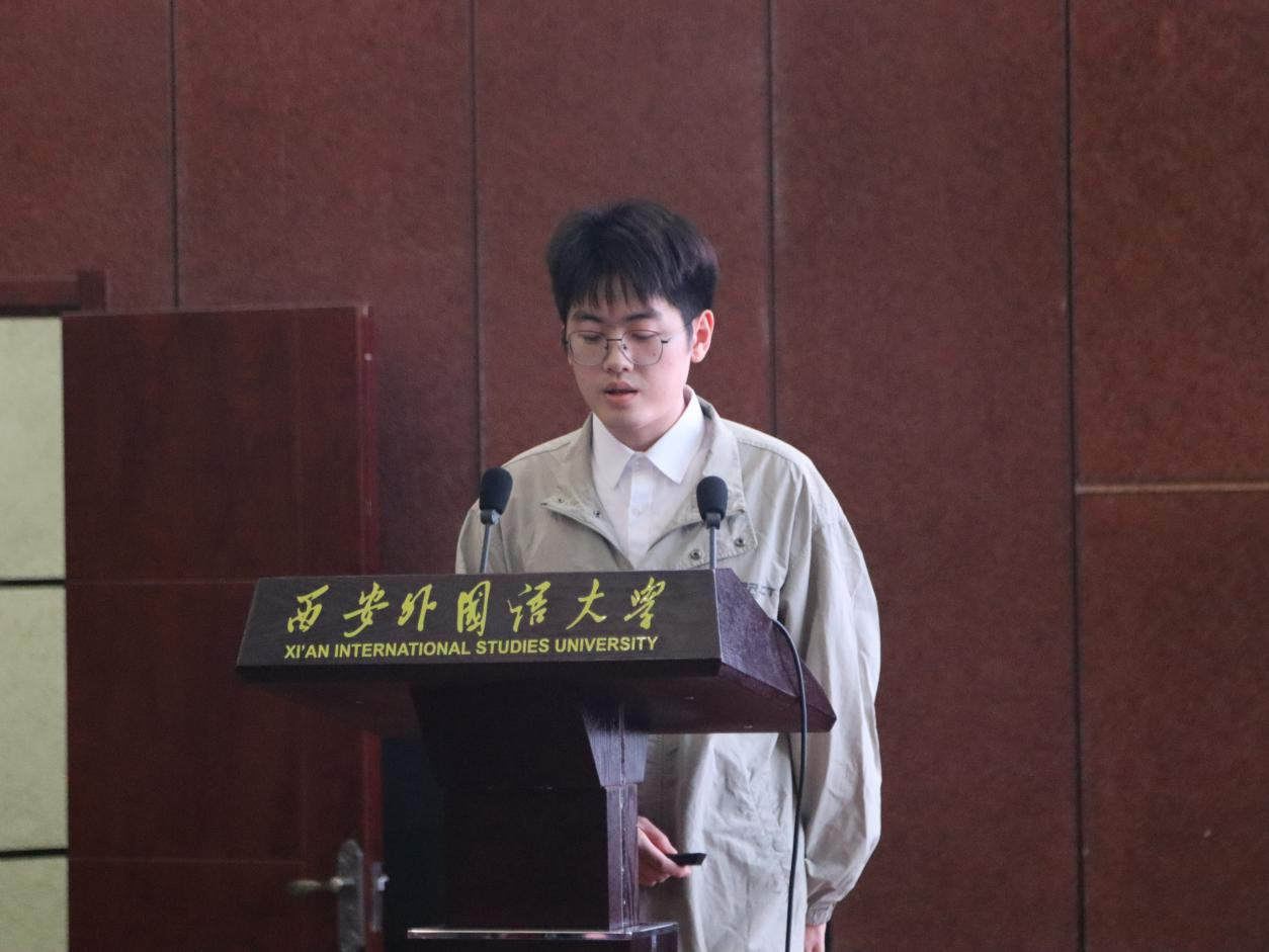 第四位发言的是汉语言文学2021班本科生倪高伟,论文题目为《<我这样的机器>中人工智能世界的文化主题探寻》。论文从人工智能建构、社会文化现象、文化主题三个层面来探寻文本中人工智能世界的文化主题。