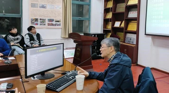 讲座伊始,周宪教授分析了“媒介”概念及其物质性特征,讨论了技术与媒介的关系;从古代“书画一体”观点出发,讨论了当下“学科分界”的问题,认为在百年未有之大变局的时代,中文专业发展前景广阔,同学们大有可为。周教授提出,艺术研究方法多元,随模仿媒介、对象的差异而变,文学艺术通过语言媒介传递思想和知识,研究文学要回归“语言”本体,坚持“语言第一位”原则。周教授辨析了研究语言时最难的“一和多”问题,进而对人工智能在文学创作中的应用进行了展望,讨论了人工智能对文学创作可能产生的影响,以及人工智能与人类创作者之间的关系。他强调了人工智能在文学研究中的潜力,同时也提醒同学们对技术发展保持批判性思考。