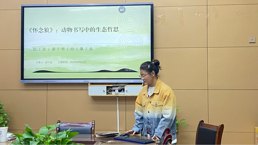 第7位发言人梁千宜分享论文《怀念狼:动物书写中的生态哲思》。论文关注动物叙事这一研究热点,说明贾平凹的书写具有道家朴素的生态思想,指引读者重审后工业文明下人类生存处境,摒弃人类中心主义流弊,树立整体生态观。