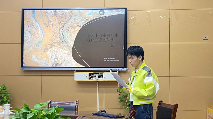 第6位发言人陈小开以《卡夫卡〈审判〉中程序正义的缺失》为题,关注法律与文学的关系。论文指出《审判》同时构建法律程序上的浅层审判与人性自私邪恶、社会藏污纳垢的深层审判,表达出卡夫卡关切无罪推定、证据裁判原则和审判中心主义的法律观念,维护法律公信力、公民认同感与杜绝异化的深沉信念。