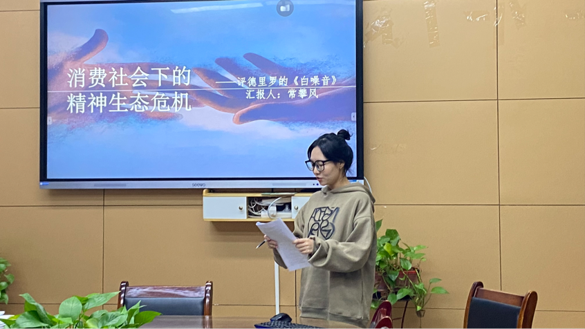 第8位发言人常攀风以《消费社会下的精神生态危机——评唐·德里罗的〈白噪音〉》为主题,借由生态批评理论谈论美国消费社会下死亡恐惧与信仰危机弥漫的社会现实,分析德里罗对后人类精神困境的深刻披露与尝试解答。