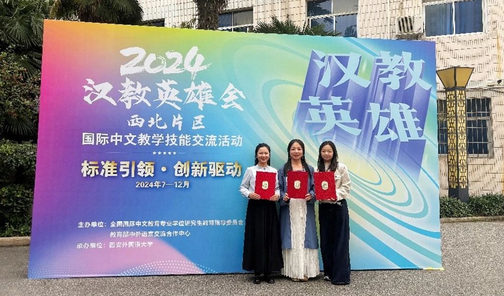国际中文教育专业硕士研究生刘婷、袁梦婷和汉学院留学生王兰(乌兹别克斯坦)组成。在此次教学技能交流活动中表现突出,荣获“最佳教学设计团队”奖。